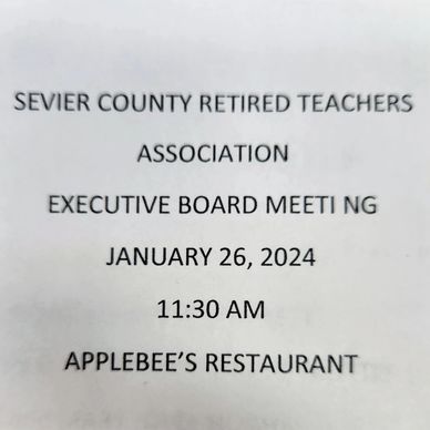 The Sevier Co. RTA Executive Board met on Friday, January 26th, at Applebees in Sevierville. President John Oxford greeted the 12 members, and TEA UniServ Tom Hopkins and TRTA Executive Director Dr. Duran Williams were guests. Legislative Chair Dr. Debra Cline provided information and thoughts on the current legislative session. Dr. Williams added additional comments on the session and an update on TRTA's upcoming events.