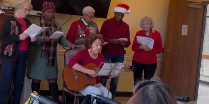 We are not sure who had the most fun singing Christmas carols, TRTA members or the 40 residents at the Knowles Assisted Living Facility. We could see women and men alike joining in on the singing.