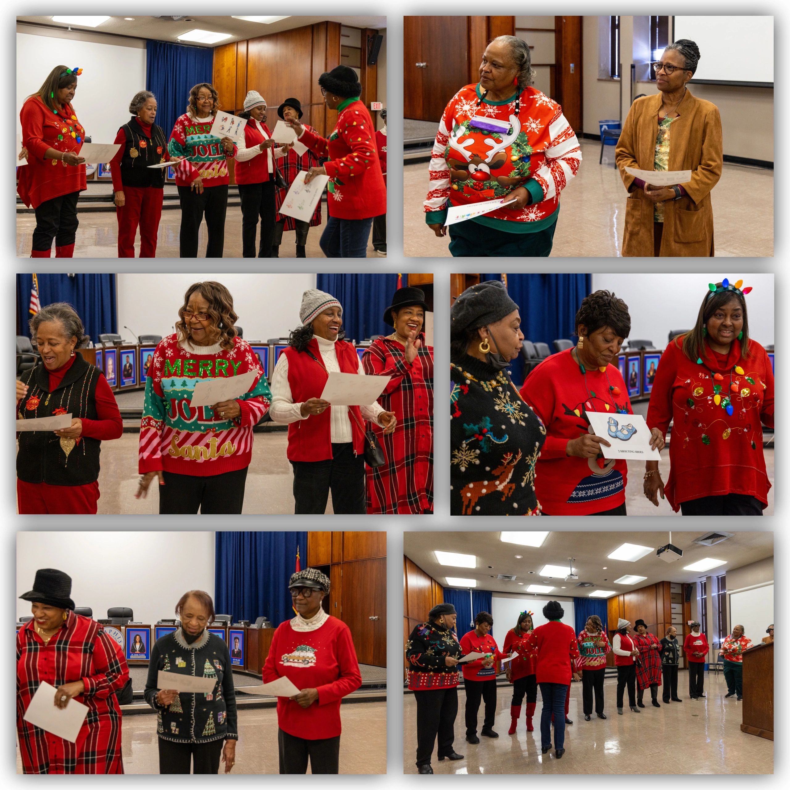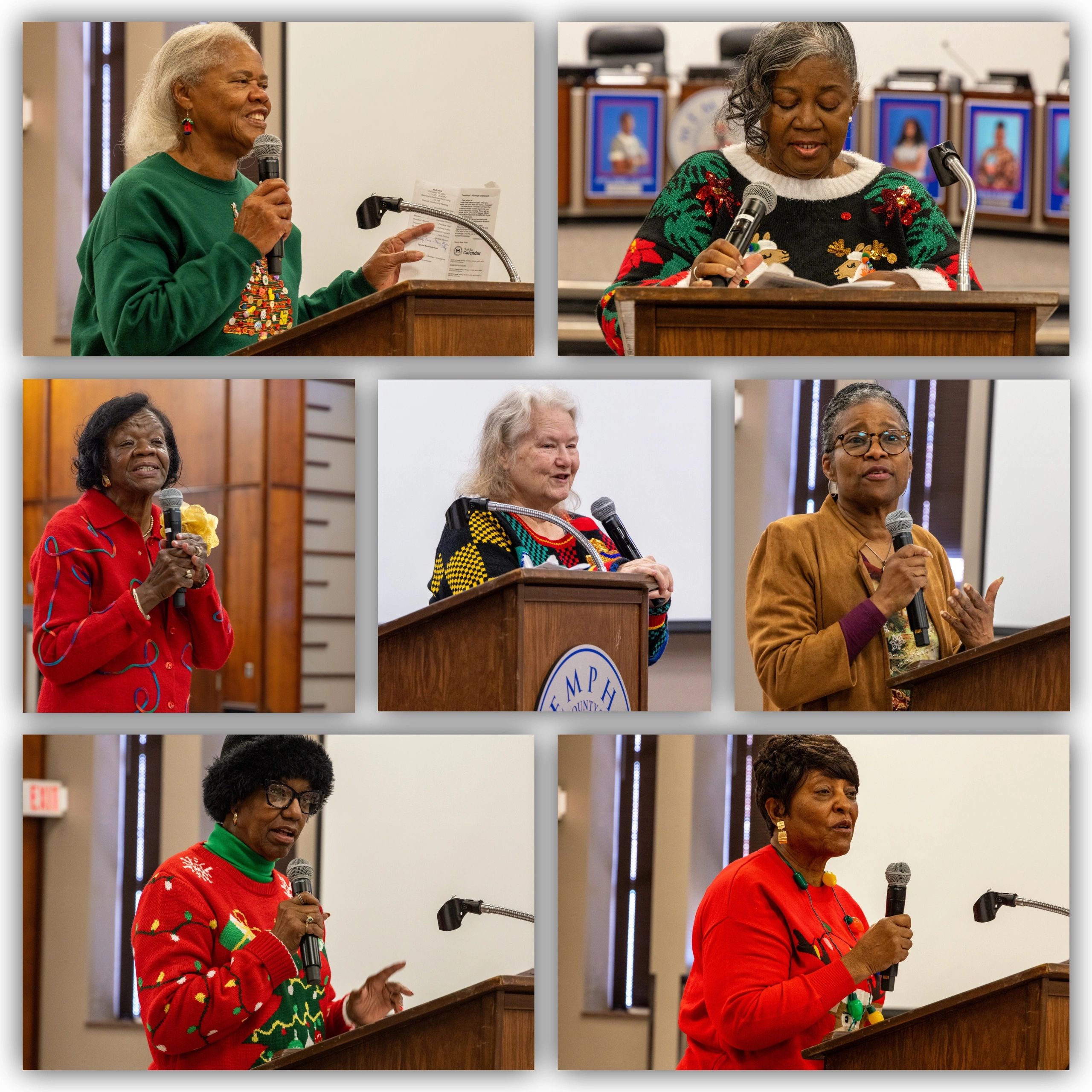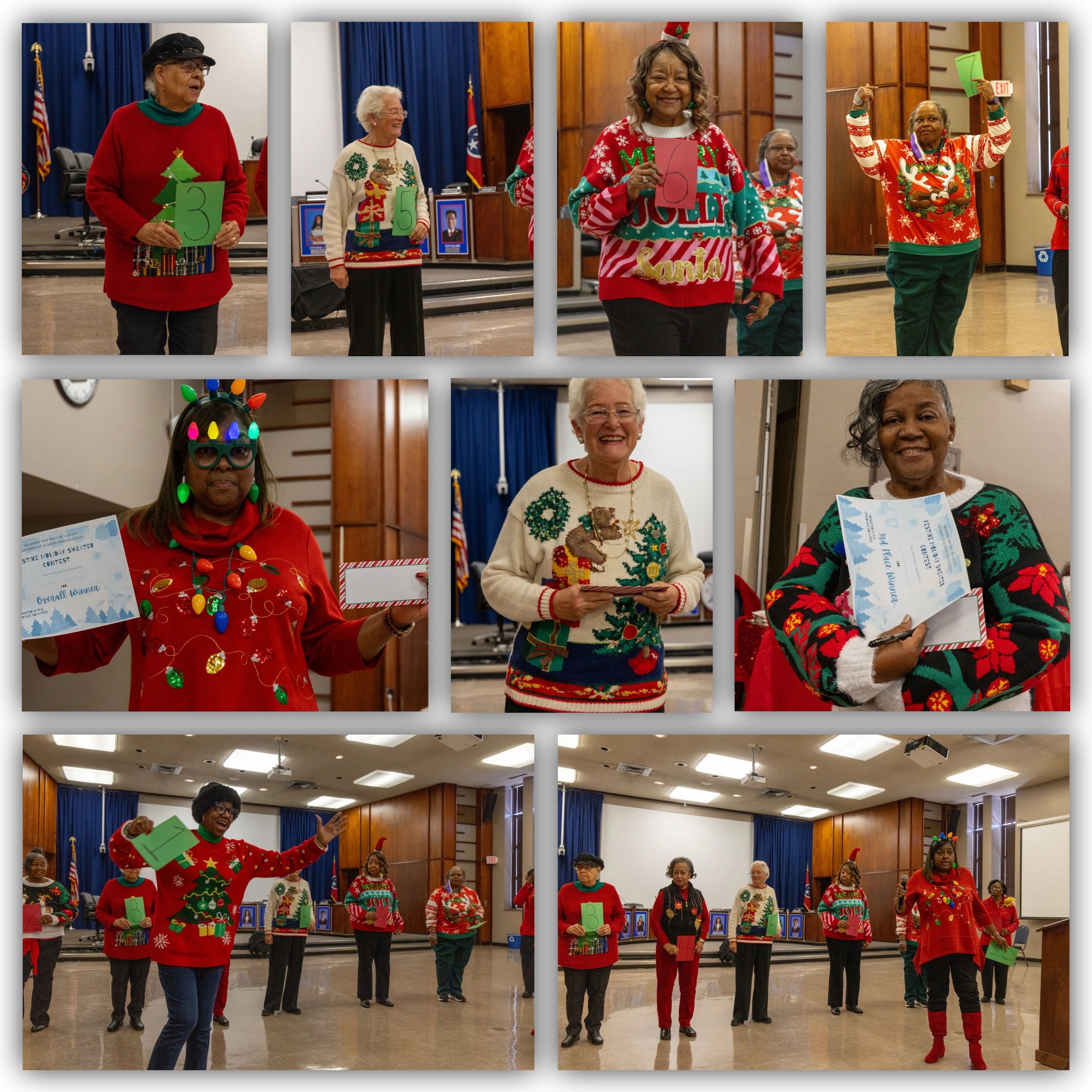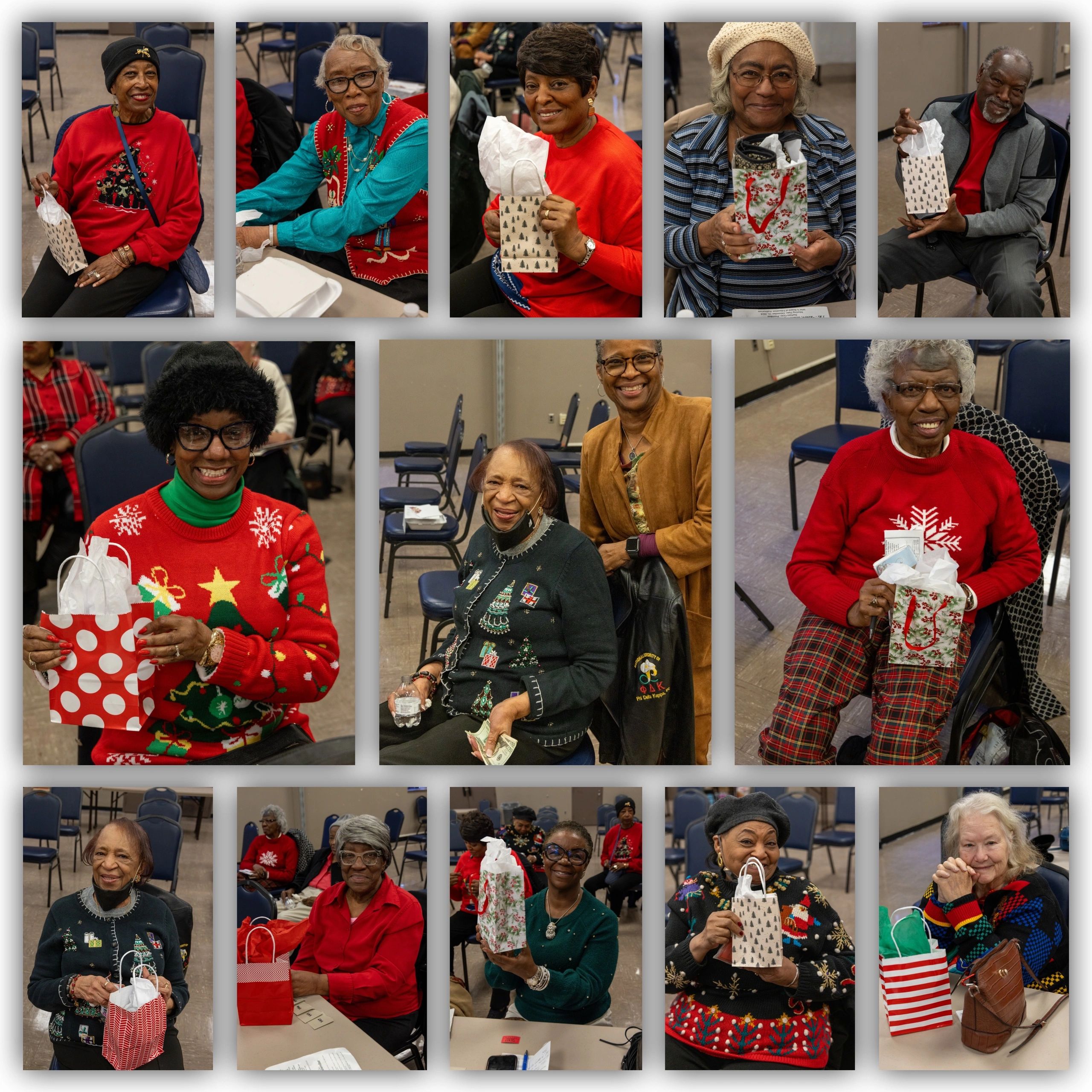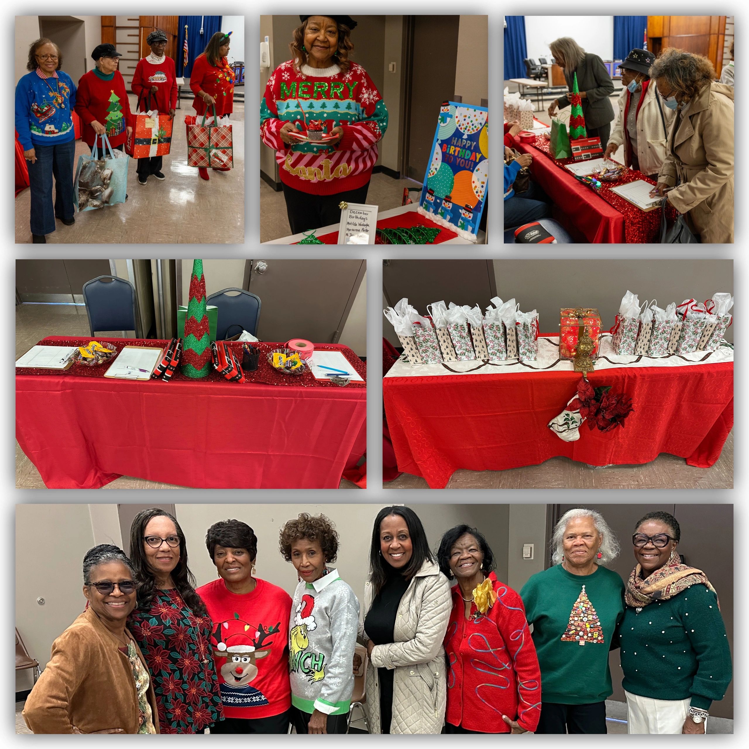 Members participated in the most “Festive Holiday Sweater” Contest. Winners were 1st place-Sharon Macklin, 2nd place-Ann Indingaro, and 3rd place-LaVerne Dickerson. (Images courtesy of Regina Presley-Hill)
